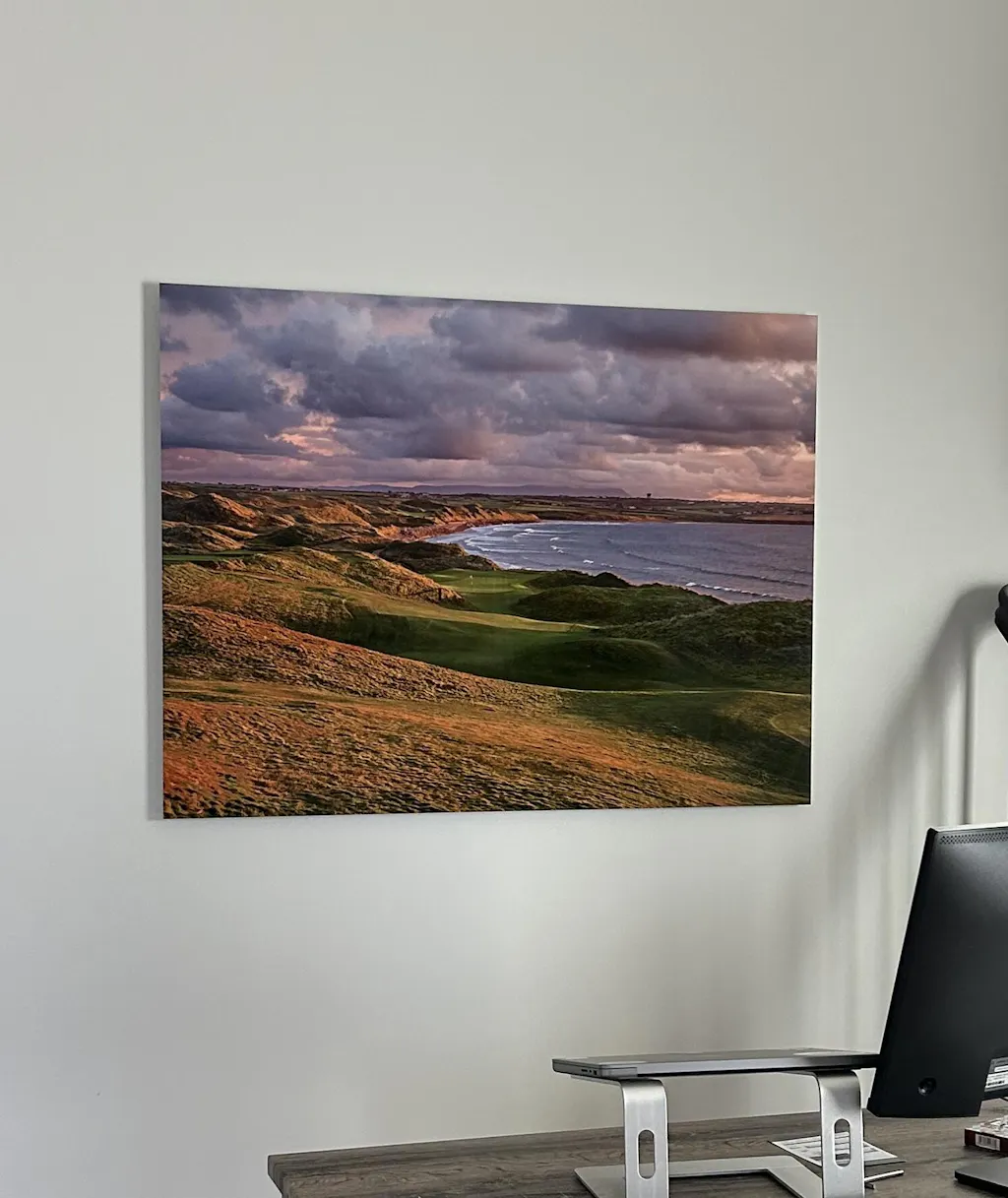 I was looking for a centerpiece for my golf themed room and came across Evan’s work on social media. Ballybunion is such a special place. I’ve been there 2X, most recently in 2019. This photo brings back memories of that incredible trip. I got the 40x 30 metal print. The quality is outstanding.